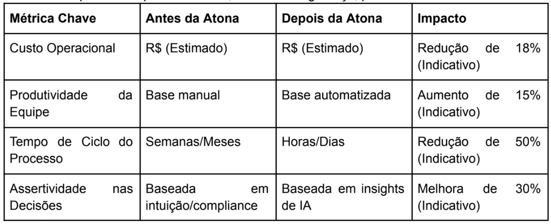 Nota: Os valores percentuais são indicativos e foram baseados em benchmarks de mercado e no potencial da tecnologia, visto que os dados financeiros específicos do cliente foram anonimizados.